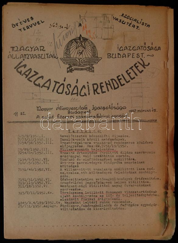 https://www.darabanth.com/en/161-Online-auction/161.0/Other-collectibles/Printed-Materials~500160/1952-MAV-Igazgatosagi-rendeletek-10db-szama~II517409