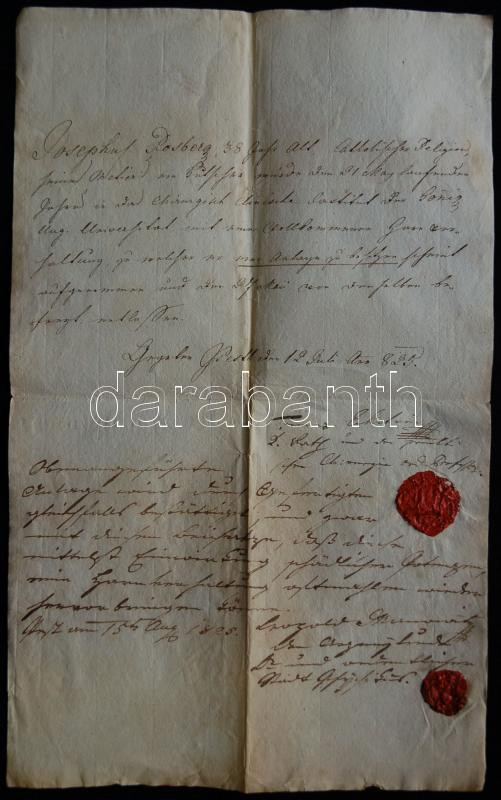 1825 Eckstein Ferenc orvosdoktor, császári és királyi tanácsos, Somogymegye táblabirája álta alíárt viaszpecsétes bizonyítvány
