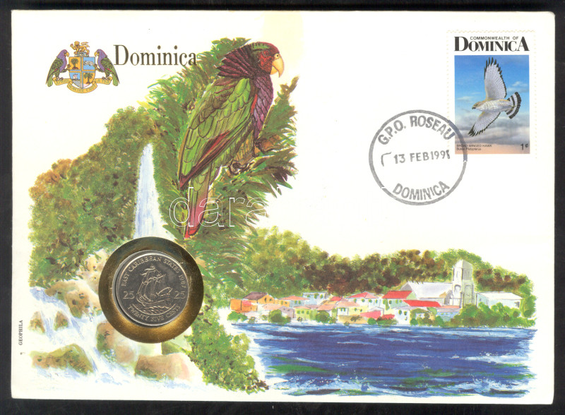 Kelet-Karibi Államok 1987. 25c érmés borítékon Dominikai bélyeggel + h... https://www.darabanth.com/en/162-Online-auction/162.0/Numismatics/Envelopes-with-Coins-and-Banknotes~1000130/Kelet-Karibi-Allamok-1987-25c-ermes-boritekon-Dominikai-belyeggel-plus-hatlapon-elso-napi-bel~II524552
