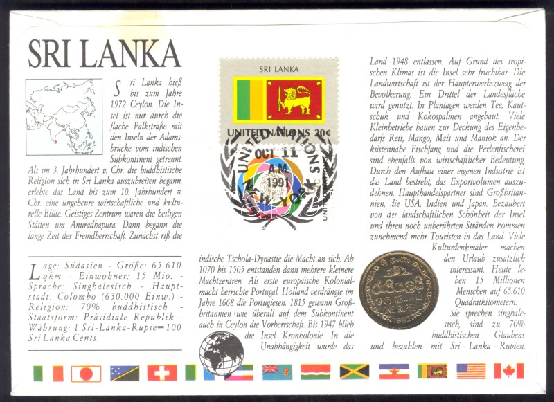 Sri Lanka 1982. 1 Rupee coin letter with stamps C:Unc