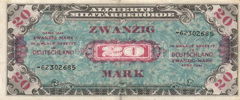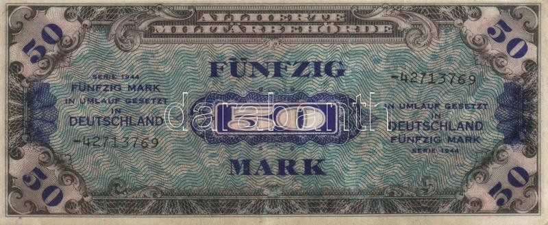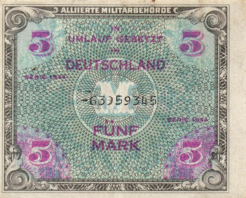 Német 3. Birodalom/Szövetséges megszállás 1944. 5M (2x)nyolc/kilenc je... https://www.darabanth.com/en/162-Online-auction/162.0/Numismatics/Foreign-banknotes~1000138/Nemet-3-BirodalomSzovetseges-megszallas-1944-5M-2xnyolckilenc-jegyu-sorszam-plus-20M-plus-50M~II503637