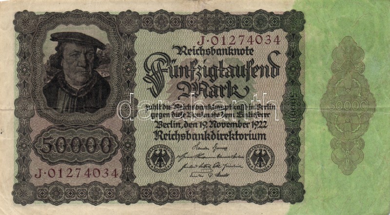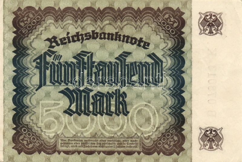 Német Birodalom/Császárság 1922.10.19. 500.000M + 1922.12.1. 5000M + 1... https://www.darabanth.com/en/162-Online-auction/162.0/Numismatics/Foreign-banknotes~1000138/Nemet-BirodalomCsaszarsag-19221019-500000M-plus-1922121-5000M-plus-192321-100000M-TII-III~II526304