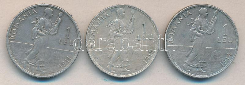 Romania 1911/12/14. 1 Leu Ag (3x) ...