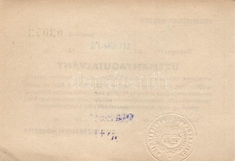https://www.darabanth.com/en/162-Online-auction/162.0/Numismatics/Hungarian-and-foreign-emergency-notes-and-coins-tokens~1000133/Budapest-1948-Kozlekedesugyi-Miniszterium-Uzemanyagutalvanya-5-liter-benzin-gazolin-gazola~II525954