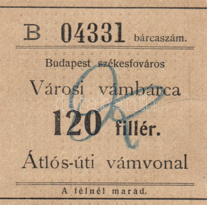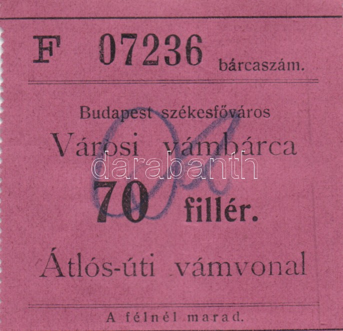 https://www.darabanth.com/en/162-Online-auction/162.0/Numismatics/Hungarian-and-foreign-emergency-notes-and-coins-tokens~1000133/Budapest-Varosi-vambarca-30f-plus-40f-plus-70f-plus-120f-Atlos-uti-vamvonalra-TII-III~II525948