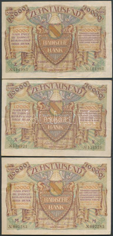 Description: Német Birodalom/Weimari Köztársaság/Mannheim/Badische Bank 1923. 10.000M (3x)klf széria T:II- fo.