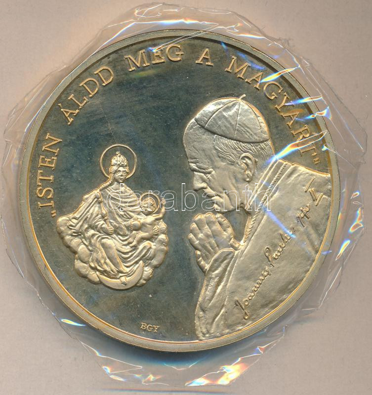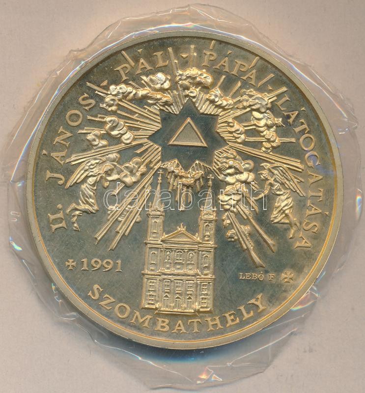 Bognár György (1944-) / Lebó Ferenc (1960-) 1991. "II.János Pál pápa látogatása - Szombathely" aranyozott piefort emlékérem (d=65mm) T:PP