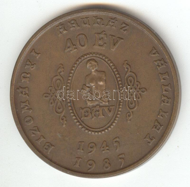 Bognár György (1944-) 1985. "BÁV 40 év / M. Theresia 1773 alapíttatott" Br emlékérem (42mm) T:1-