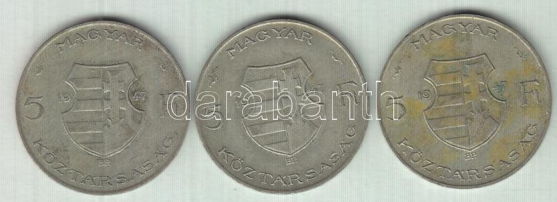 https://www.darabanth.com/en/162-Online-auction/162.0/Numismatics/Hungarian-metal-and-silver-coins~1000135/1947-5Ft-Ag-Kossuth-3x-T2-3~II515670