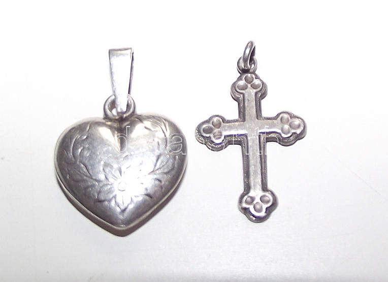 Egy szív és egy kereszt alakú kis ezüst (Ag) medál /