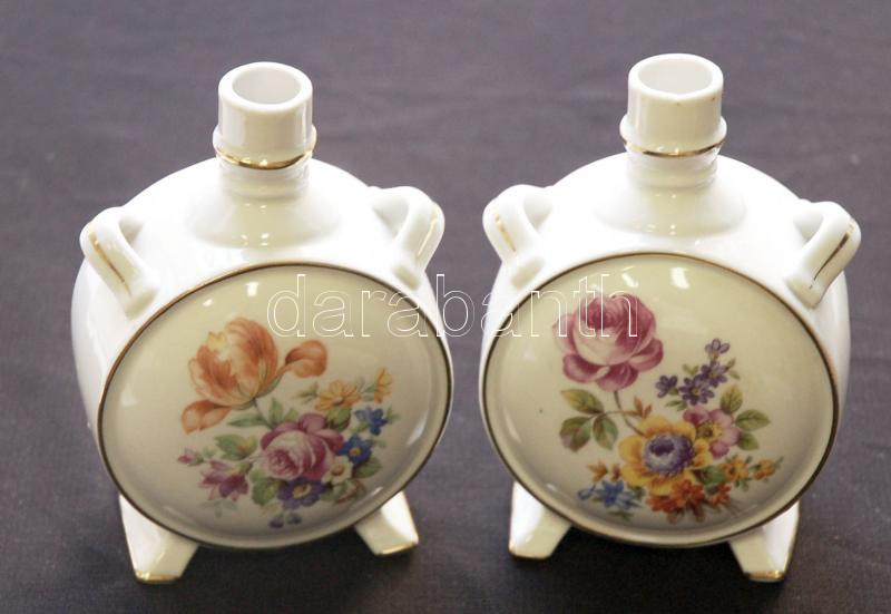 2db virágokkal díszített jelzett porcelán kulacs dugó nélkül 13cm
