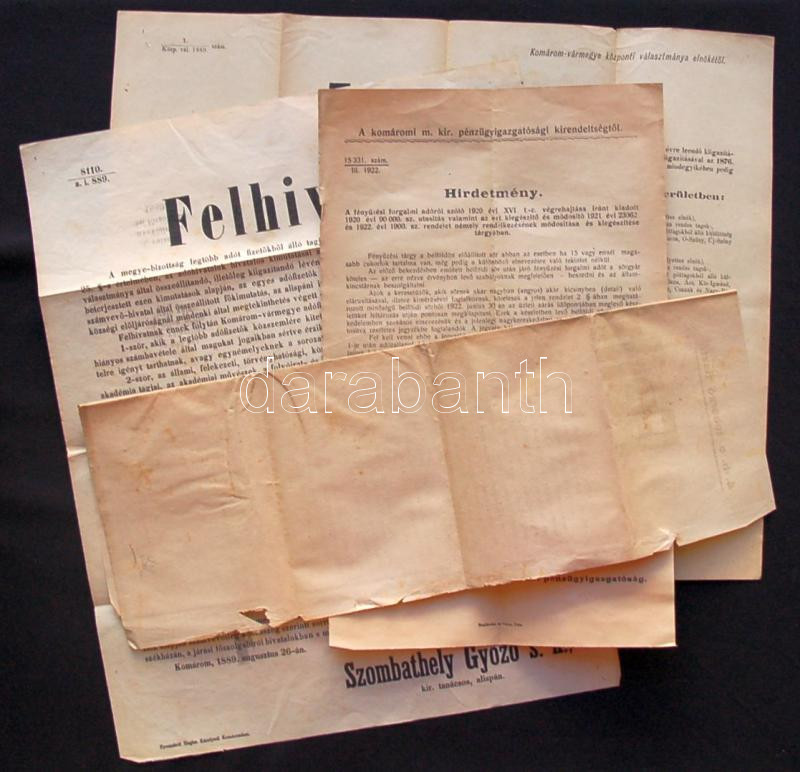 1889-1922 13db hirdetmény Komárom környékéről adózással, toborzással k... https://www.darabanth.com/en/162-Online-auction/162.0/Other-collectibles/Historical-documents-manuscripts~1000005/1889-1922-13db-hirdetmeny-Komarom-kornyekerol-adozassal-toborzassal-kapcsolatban-tobbek-~II525037