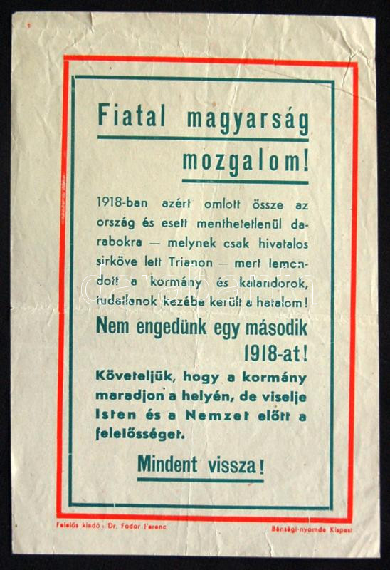 cca 1930 Fiatal Magyarság Mozgalom irredenta plakát 16x23 cm