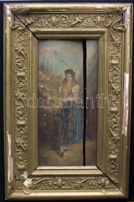 Jelzés nélkül cca 1800: Lány kosárral, olaj-fa, keretben 31x47cm (sérült)