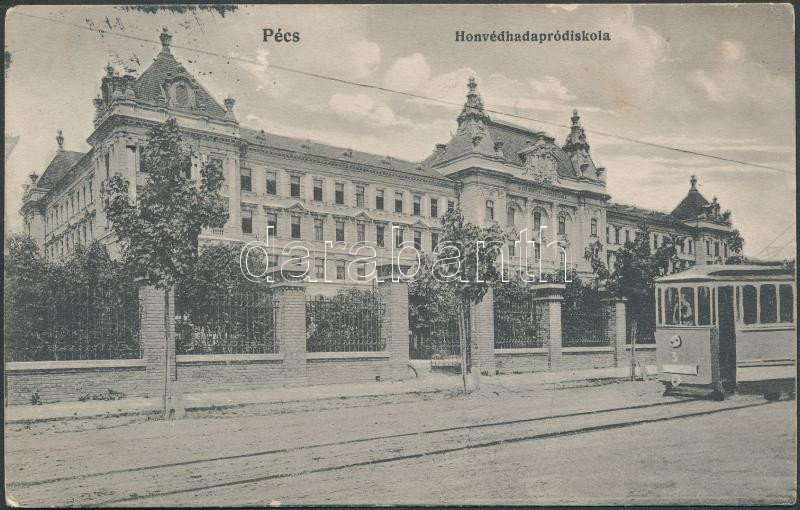 Pécs Honvéd hadapród iskola, villamos, Divald & Monostory (EK)