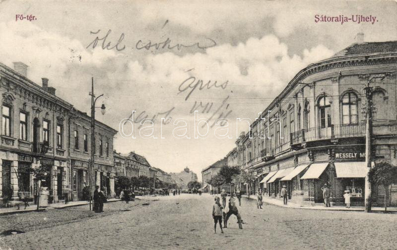 Sátoraljaújhely Főtér Wessely Mór ruhaáruházával (EK)