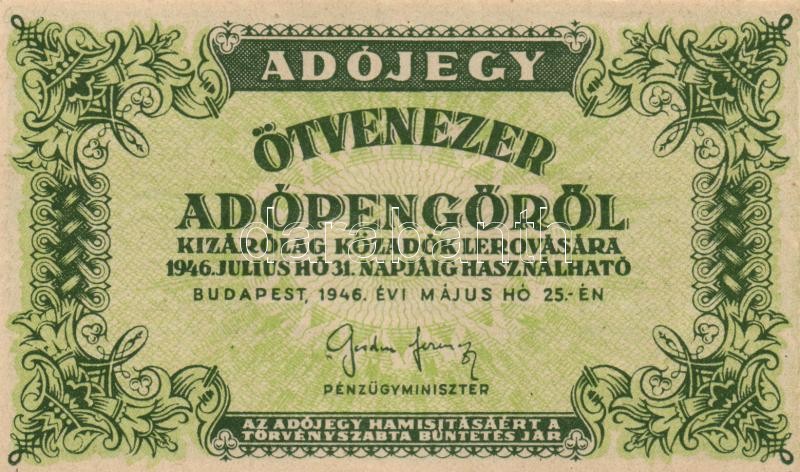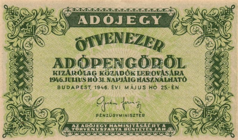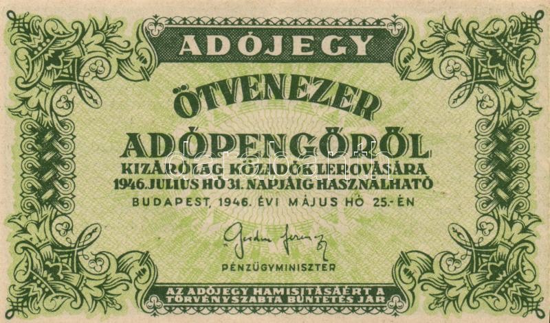 1946. 50.000AP vékony vízjeles papíron sorszám nélkül (10x) T:I,I-