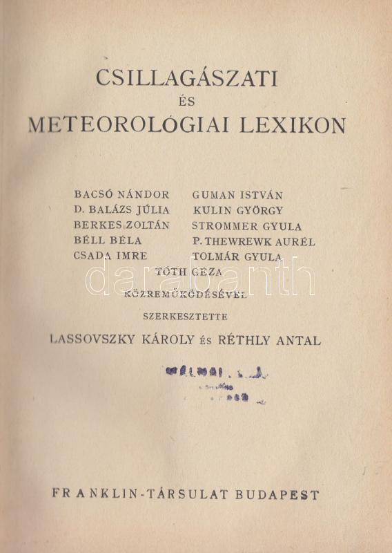 Lassovszky-Réthly: Csillagászati és meteorológiai lexikon, Franklin Tá... https://www.darabanth.com/en/163-Online-auction/163.0/Other-collectibles/Books-Other-rarities~800038/Lassovszky-Rethly-Csillagaszati-es-meteorologiai-lexikon-Franklin-Tarsulat-kiadasa-Bp-szC3~II488473