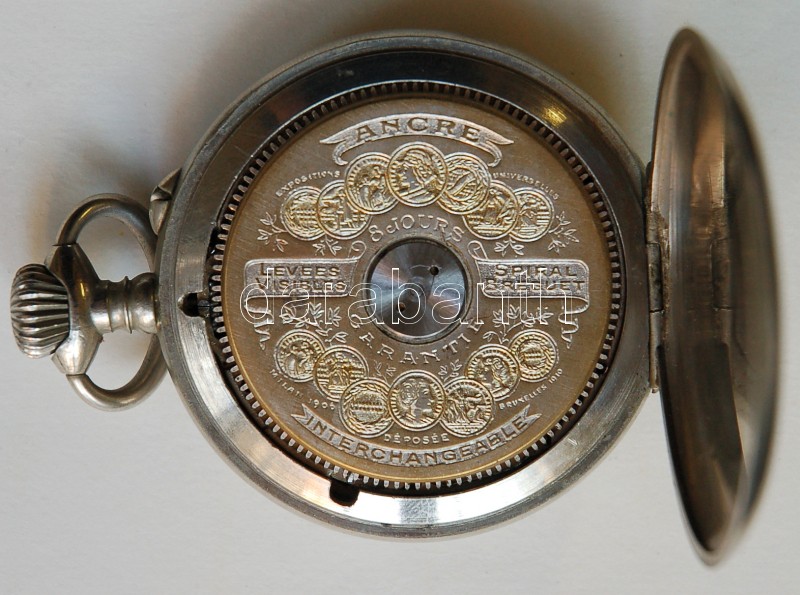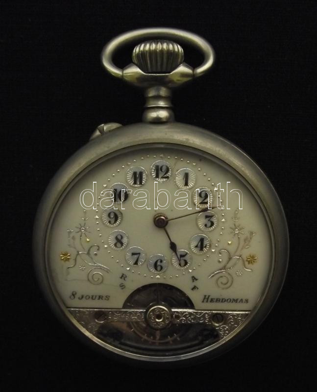 cca 1920 Hebdomas 8 napos, különleges rugós szerkezetű zsebóra, festet... https://www.darabanth.com/en/163-Online-auction/163.0/Other-collectibles/Watches~1600018/cca-1920-Hebdomas-8-napos-kulonleges-rugos-szerkezetu-zsebora-festett-porcelan-szamlappal-~II531384