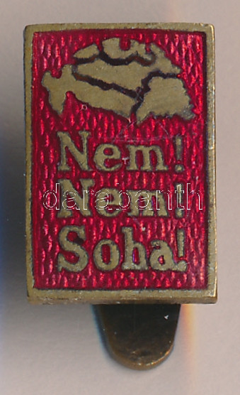 ~1940. "Nem! Nem! Soha!" zománcozott irredenta gomblyukjelvény, Morzsá...