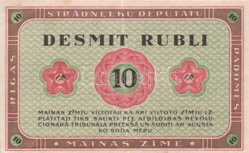 https://www.darabanth.com/en/164-Online-auction/164.0/Numismatics/Foreign-banknotes~2000105/LettorszagRiga-szovjet-munkaskuldottek-kiadasa-1919-10R-TII-3Cbr3ELatviaRigas-workers-deput~II542329