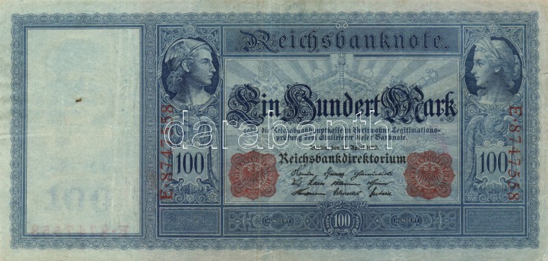 Német Birodalom / Császárság 1910. 100M T:III + 1914. 50M 6 jegyű sors... https://www.darabanth.com/en/164-Online-auction/164.0/Numismatics/Foreign-banknotes~2000105/Nemet-Birodalom-Csaszarsag-1910-100M-TIII-plus-1914-50M-6-jegyu-sorszammal-TIII-plus-Nemet-Bi~II541752