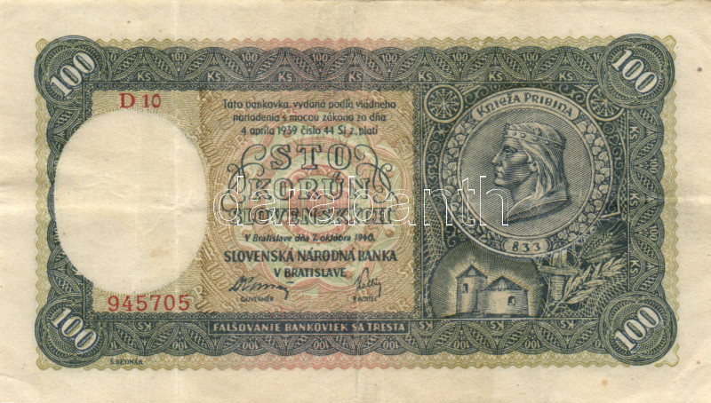 https://www.darabanth.com/en/164-Online-auction/164.0/Numismatics/Foreign-banknotes~2000105/Szlovakia-1940-100K-2x-majdnem-egymas-melletti-sorszammal-TIII-3Cbr3ESlovakia-1940-100-Korun-~II537654