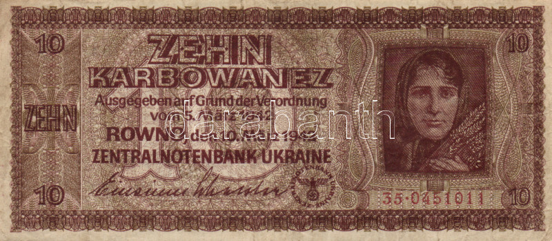 https://www.darabanth.com/en/164-Online-auction/164.0/Numismatics/Foreign-banknotes~2000105/Ukrajnanemet-megszallas-1942-10K-TIII-3Cbr3EUkraine-German-occupation-1942-10K-TIII~II542296