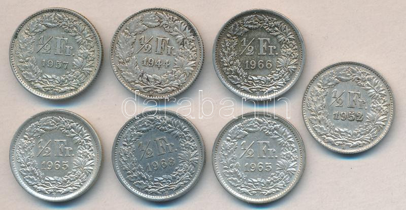 Svájc 1944/52/57/65/66/68 1/2Fr Ag (7x) T:2,2-