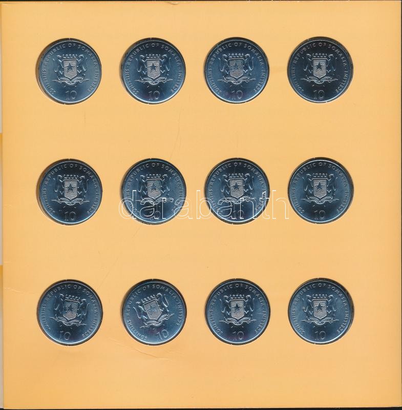 Somalia 2000. 10 Shillings (12x) the Chinese Zodiac signs in set with information and ceertificate C:BU