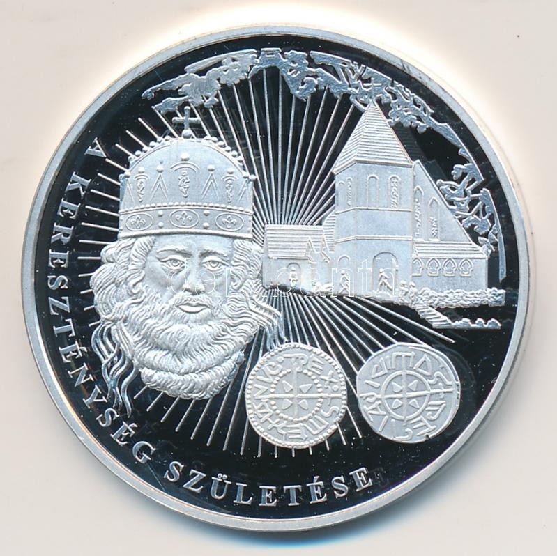 https://www.darabanth.com/en/164-Online-auction/164.0/Numismatics/Hungarian-commemorative-medals-plaques-badges~2000103/DN-A-magyar-penz-kronikaja-A-keresztenyseg-szuletese-Ag999-emlekerem-20g38-61mm-TP~II535734
