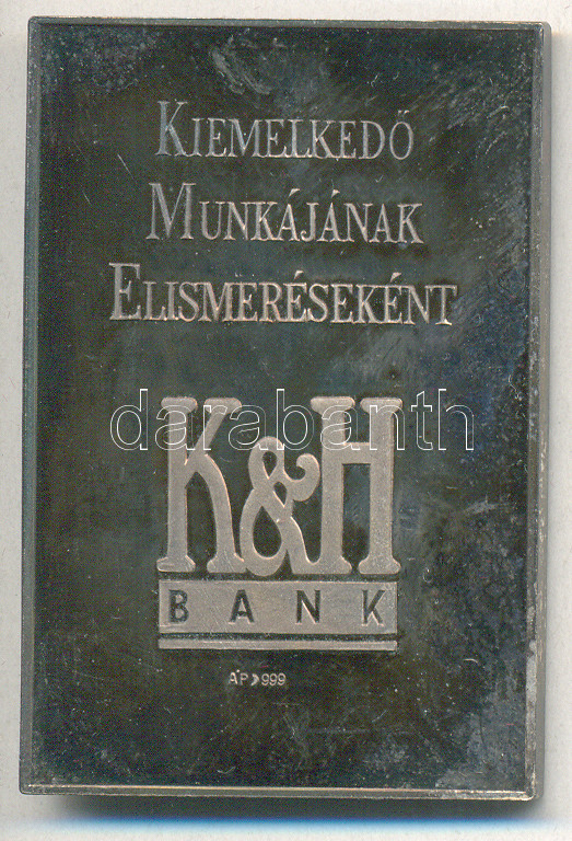 https://www.darabanth.com/en/164-Online-auction/164.0/Numismatics/Hungarian-commemorative-medals-plaques-badges~2000103/DN-KH-Bank--Kiemelkedo-Munkajanak-Elismereseert-Ag999-plakett-disztokban-51g60x40mm-~II541060