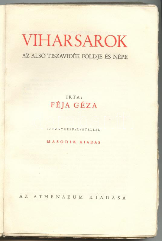 Féja Géza: Viharsarok. Az Alsó Tiszavidék földje és népe. 37 fényképfe... https://www.darabanth.com/en/164-Online-auction/164.0/Other-collectibles/Books-History~500029/Feja-Geza-Viharsarok-Az-Also-Tiszavidek-foldje-es-nepe-37-fenykepfelvetellel-Bp-en~II537355