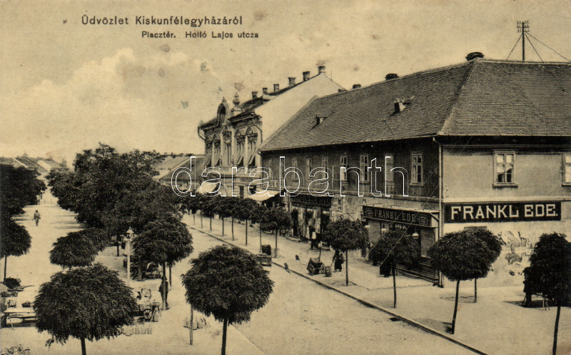 Kiskunfélegyháza Piac tér, Holló Lajos utca, Frankl Ede kereskedése