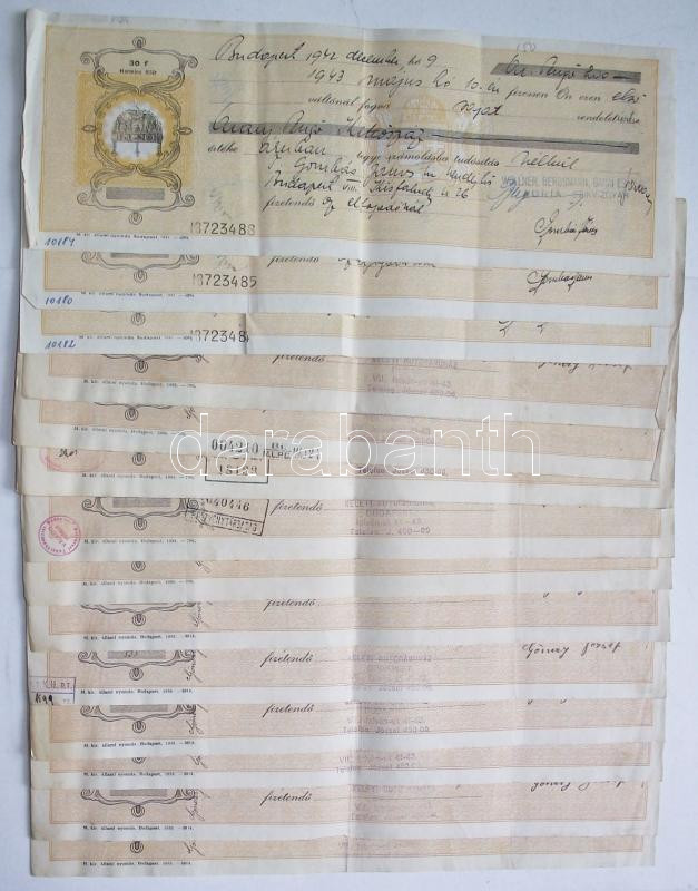 Budapest 1934-43. 15klf kitöltött váltó, sok lyukasztva