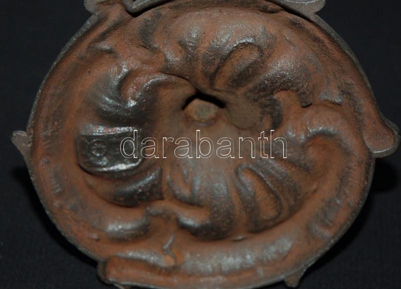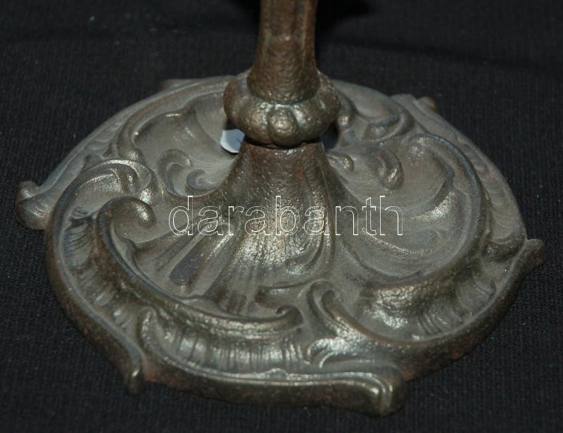 Cca 1880 Dekoratív öntött vas gyertyatartó, alján pecsét, 21 cm