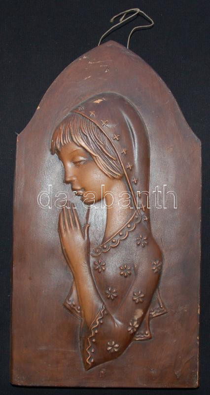Cca 1940 B.E. szignó: Imádkozó lány, kerámia, 18×34 cm, apróbb hibákkal