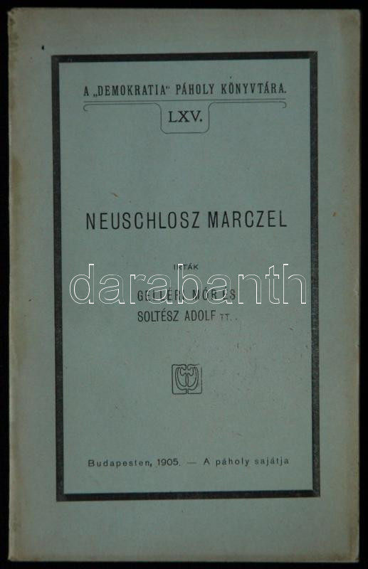 Szabadkőművesség: Gelléri Mór - Soltész Adolf: Neuschlosz Marczel. Bp., 1905. Demokratia páholy. 108p. fényképpel