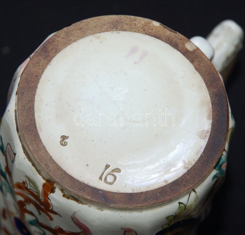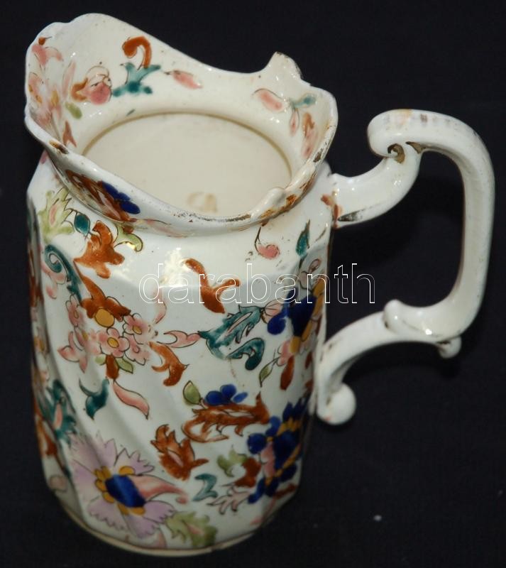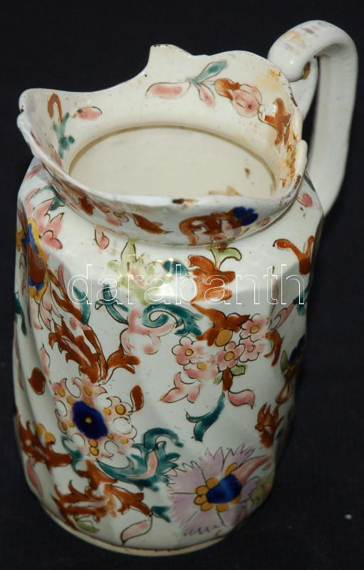 Cca 1890 Fajansz kiöntő,jelzés nélkül, 91-es formaszámmal, 14 cm (Zsol...