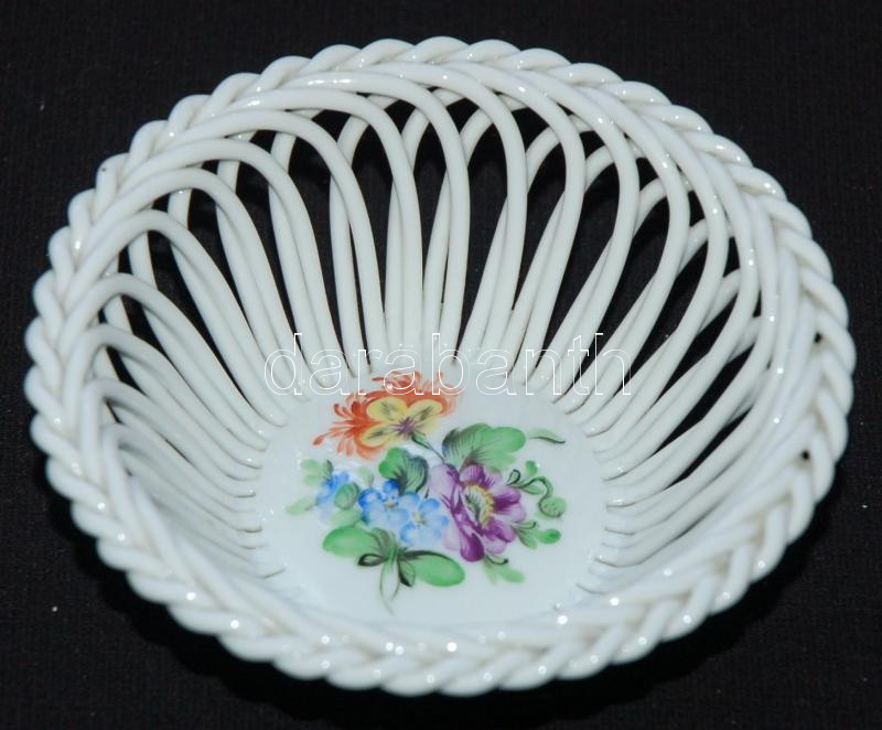 Kézzel festett Bouquet de Saxe-mintás jelzett Herendi fonott porcelán ...