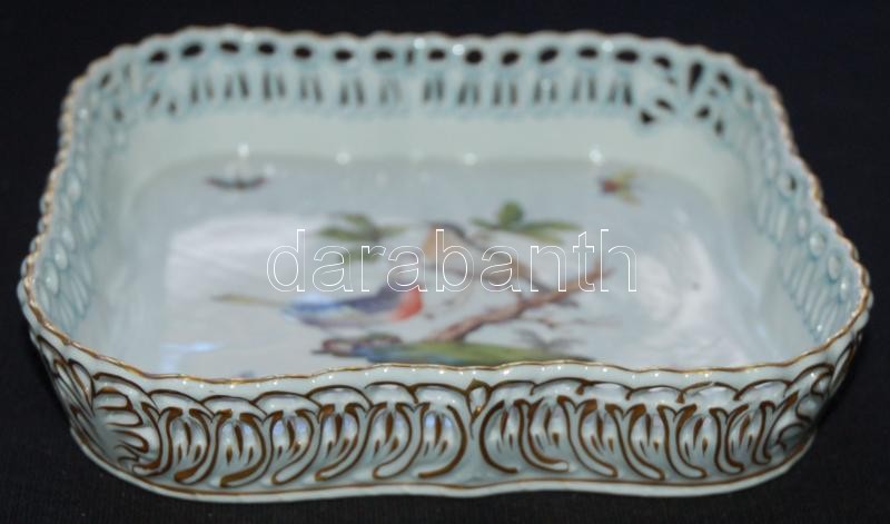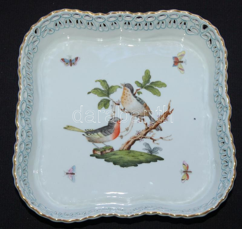Kézzel festett aranyozott sorszámozott Rothschild-mintás jelzett Herendi áttört porcelán tál hibátlan állapotban /