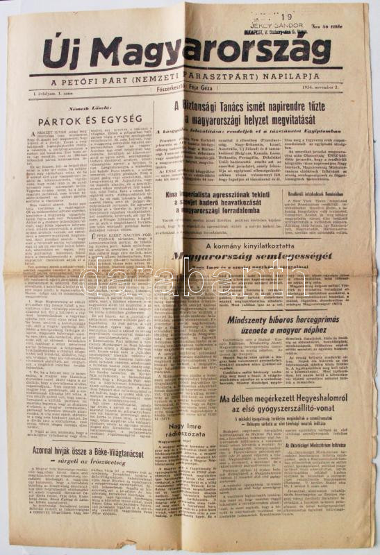 https://www.darabanth.com/en/165-Online-auction/165.0/Other-collectibles/Historical-documents-manuscripts~900015/1956-nov-2-Az-Uj-Magyarorszag-indulo-szama-a-forradalom-hireivel-jo-allapotban~II534819