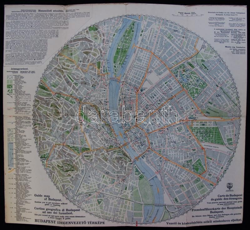 1929 M. Kir. Állami Térképészet Budapest idegenvezető térképe 41x37cm ...