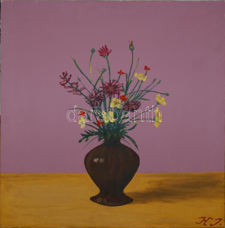 H.J. szignóval: Csendélet lila háttérrel, olaj, vászon, jelzett 70×60 ...
