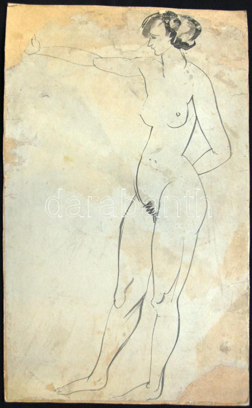 Lux Alice (1906-1988): Női akt, tus, karton, 43×27 cm, apró hibákkal