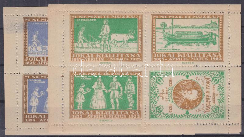 1925 Jókai kiállítás 2 db levélzáró ív zöld és kék gépszínátnyomattal