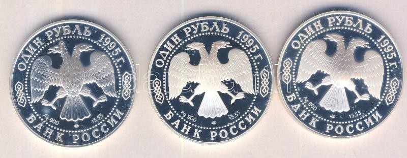 Description: Oroszország 1995. 1R Ag (3x) "Vadvilág-Kaukázusi nyírfajd / Delfin / Fehér gólya" T:PP