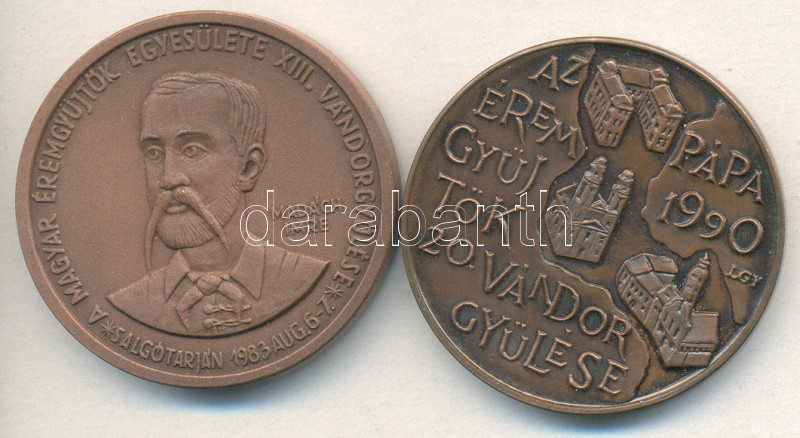 Garamkeszi János (1936-) 1983. "Salgótarján - Madách Imre / Az ember tragédiája színpadi bemutatásának 100. évfordulója" Br emlékérem (42,5mm) T:1 + Lantos Györgyi (1953-) 1990. "MÉE Pápa / Éremgyűjtők 20. Vándorgyűlése" Br emlékérem (42,5mm) T:1-