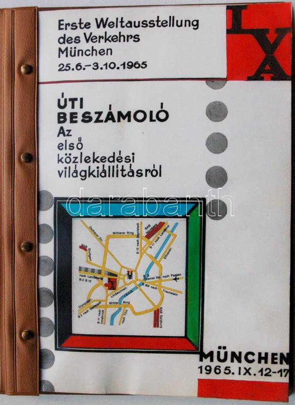 1965 Úti beszámoló az Első Közlekedési Világkiállításról Münchenből. Géppel írt napló, bekötve, fekete-fehér fotókkal illusztrálva, p84