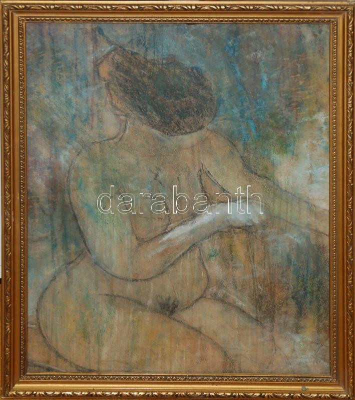 Jelzés nélkül: Női akt, pasztell, papír, üvegezett keret, hátoldalán L...